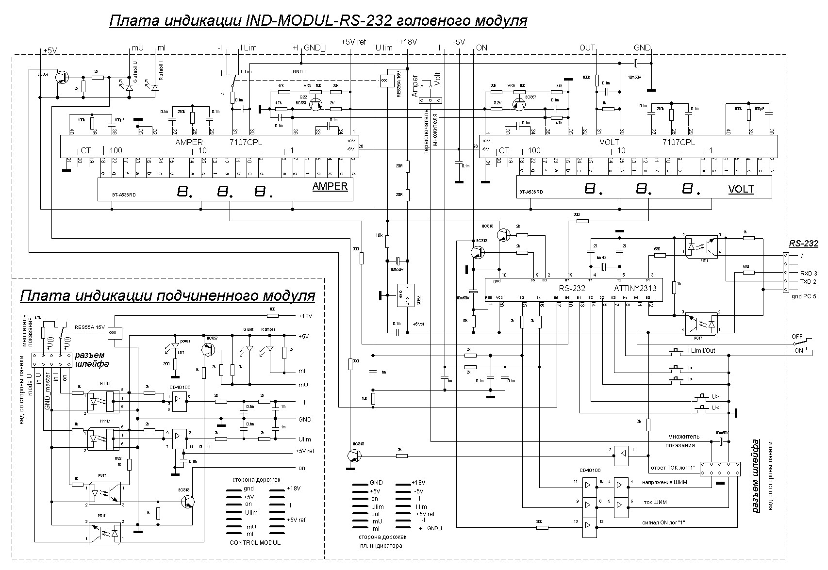 Индикация выходных параметров, для блоков < 1000 Вт